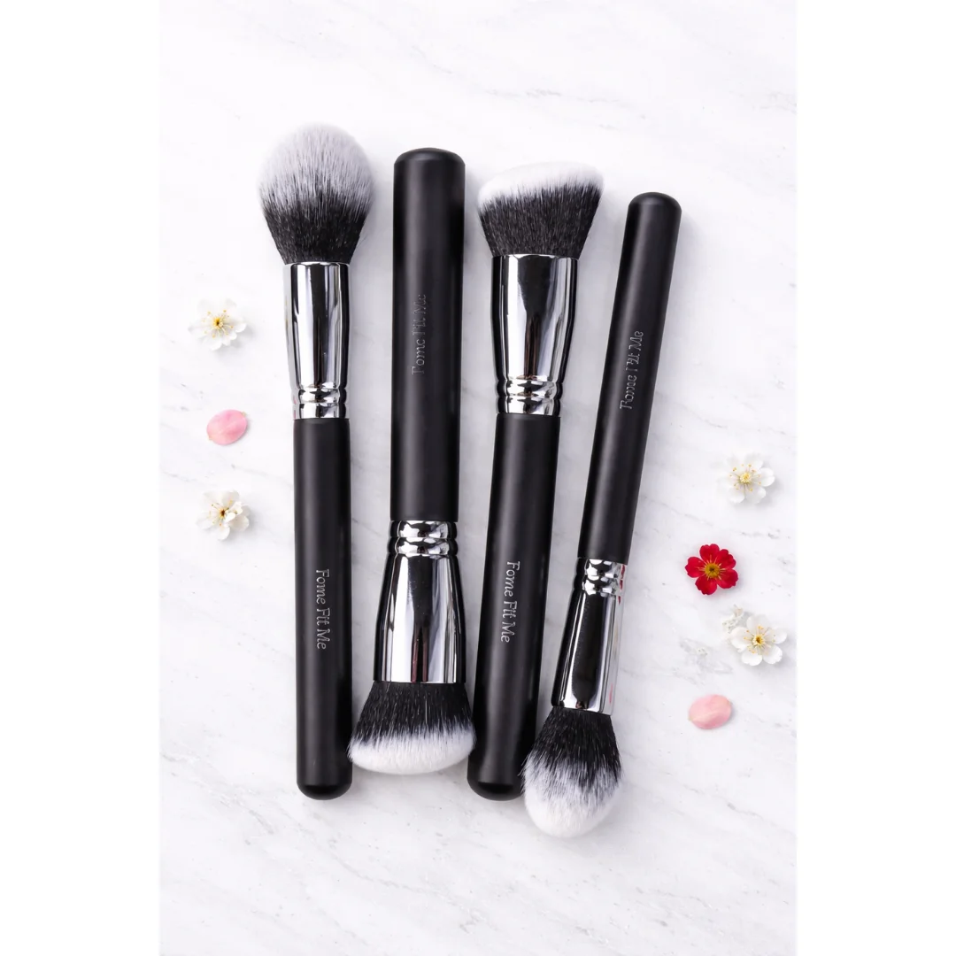 These brushes feature the signature Fome Fit Me aesthetic—matte black ergonomic handles paired with chrome ferrules and ultra-soft, dual-toned synthetic bristles. Whether you are buffing in a full-coverage foundation, setting your T-zone with powder, or sculpting your cheekbones with bronzer, this set provides the density and softness required for a luxury beauty experience.