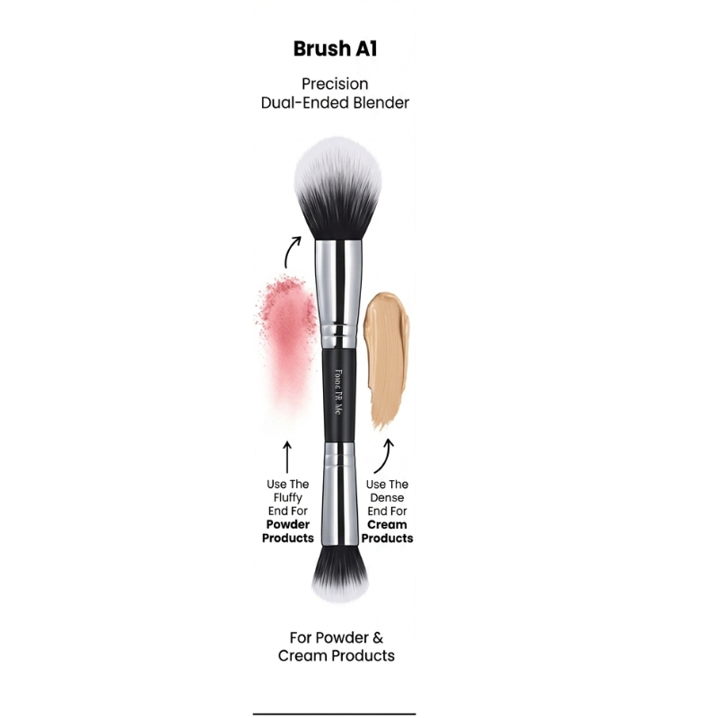 Elevate your beauty routine with the ultimate 2-in-1 tool designed for a seamless, airbrushed look. This Dual-Ended Makeup Brush combines a large, fluffy head for all-over diffusion with a tapered precision head for targeted sculpting. Crafted with premium gradient synthetic fibers, it delivers professional-grade performance whether you are setting your face or adding a pop of color to your cheeks.