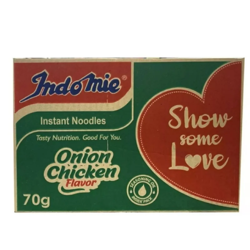 Indomie Onion Chicken Flavor. This variant takes the classic chicken taste to the next level with the addition of rich, fragrant onion notes that create a deeply satisfying broth. Known for its “Tasty Nutrition,” Indomie provides a quick, delicious, and energy-packed meal that has become a favorite across the globe. This bulk carton ensures your kitchen is always stocked with the perfect comfort food for any time of day.